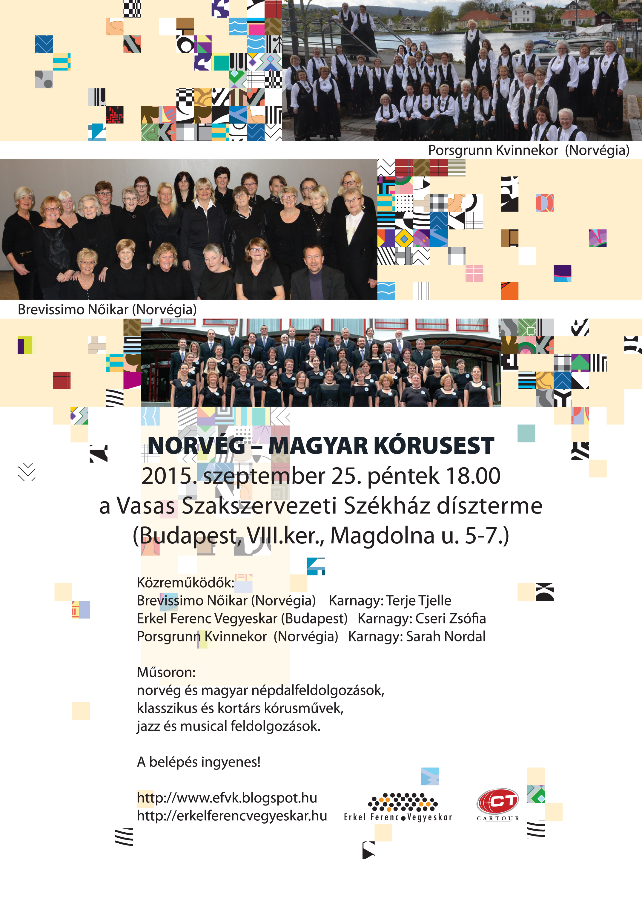 A VASAS Szakszervezeti Székház Dísztermében 2015. szeptember 25-én 18:00 órakor NORVÉG-MAGYAR KÓRUSHANGVERSENY kerül megrendezésre. Az esemény meghívója itt olvasható. Szeretettel várunk minden érdeklődőt!