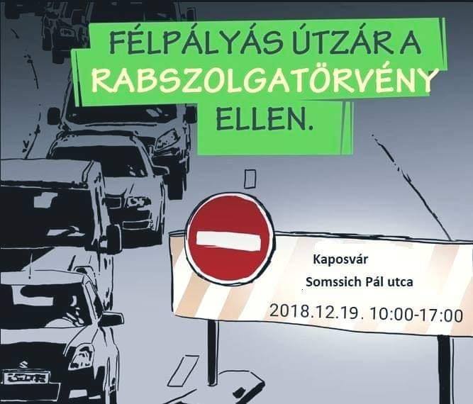 Egyre több helyen ott vagyunk, folytatjuk! Kaposváron, Kisvárdán és Nagykanizsán is félpályás útlezárást szerveznek szerdán, december 19-én a helyiek. A cél a figyelemfelkeltés és a rabszolgatörvény elleni tiltakozás. Gyertek minél többen! Együtt erősek vagyunk! A kaposvári helyszín a Somssich Pál utca, 10-17 óráig. Ugyanezen a napon Kisvárdán az Árpád utca bevezetőjénél 8-20 óráig lesznek demonstrálók,